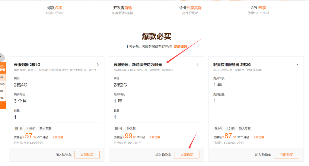 购买这个套餐即可,新手入门买这一台主机完全足够了,接下来的教程都以这台服务器为教程了。